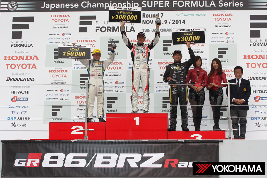 谷口選手がトップに立って間もなく、後続のクラッシュによりセーフティカーが導入された。しかし、リ・スタートで巧みな加速を見せた谷口選手はコントロールライン通過までに後続を引き離すと、そのままマシンをフィニッシュまで運んで今季5勝目を飾ることに成功。この勝利によって2014年のGAZOO Racing 86/BRZ Raceは開幕戦から最終戦までの10戦全てをヨコハマタイヤ勢が優勝する完全制覇をなし遂げた。