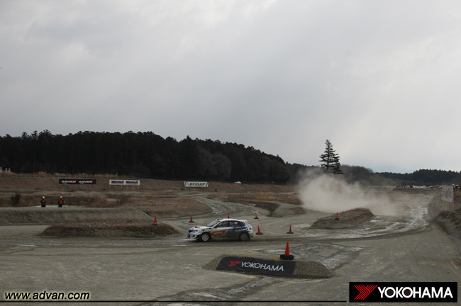 第1ヒートは路面がかなり濡れていたのと、砂利が多かったのでADVAN A031を装着しました。タイムは3番手でしたけれど、最初から第2ヒートはADVAN A036でいくと決めていたので、手応えは十分に感じていました。