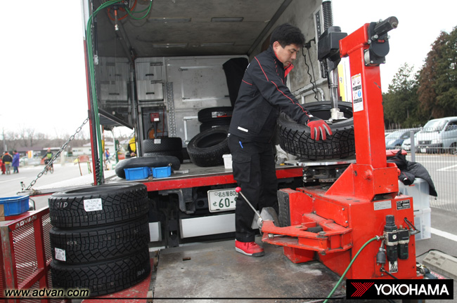 第1ヒート、散水の影響によりウェット路面でのスタートとなったPNクラスはウェット路面に強いADVAN A031を装着した選手が多く、中盤ゼッケンのNクラスやSAクラスは硬質ダート路面用のADVAN A035やA053、砂利が掃けた後半ゼッケンのSC、Dクラスは第1ヒートから超硬質ダート路面用のADVAN A036を装着する選手が多いという状況。