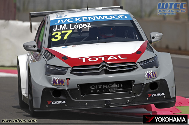 これ以外は綺麗なスタート、特にポールポジションのロペス選手は好ダッシュで後続にポジションを脅かされることなく1コーナーへと飛び込んでいく。その後方ではミューラー選手が早々にチルトン選手をかわして3番手に浮上、1コーナー進入の時点でシトロエンの1-2-3体制を構築した。
