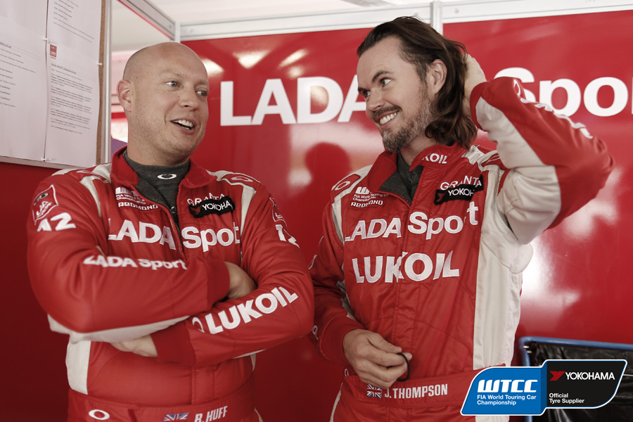 今季はグランタ1.6Tの新規定車両3台体制で臨んでいるラーダ。旧規定時代からラーダを駆るジェームス・トンプソン選手(写真・右)、今季からラーダに加わり車両開発も担ってきたロブ・ハフ選手(写真・左)、そして24歳の若手ロシア人ミハイル・コズロフスキー選手という布陣である。