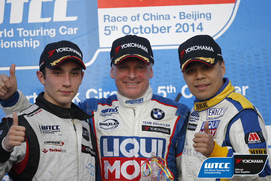 車両回収が終わり、レースが再開されたのは11周目。注目の再スタート、ここもチルトン選手がきっちりと決めてトップをキープ。ここからは再びマージンを周回毎に増やして主導権を手放すことなく、28周とされた決勝レースでウィニングチェッカー。自身3回目の優勝で北京金港サーキットのWTCC初ウィナーに輝き、第7戦・スロバキアから続いていたシトロエンの連勝にストップをかけた。2位はミューラー選手、3位はロペス選手という表彰台、YOKOHAMAトロフィーはフランツ・エングストラー選手が連勝を伸ばした。