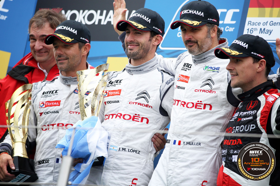 一方で上位を固めたシトロエン勢、中でもロペス選手は終始レースの主導権を手放すことなく走りきり、今季開幕から4戦連続となる第1レース優勝を飾った。また、YOKOHAMAトロフィーは総合4位フィニッシュのミケリス選手。スポット参戦で注目を集める女性ドライバーのザビーネ・シュミッツ選手(シボレーRML)も、総合10位/YOKOHAMAトロフィー5位で初WTCCのリザルトにその名を刻んだ。