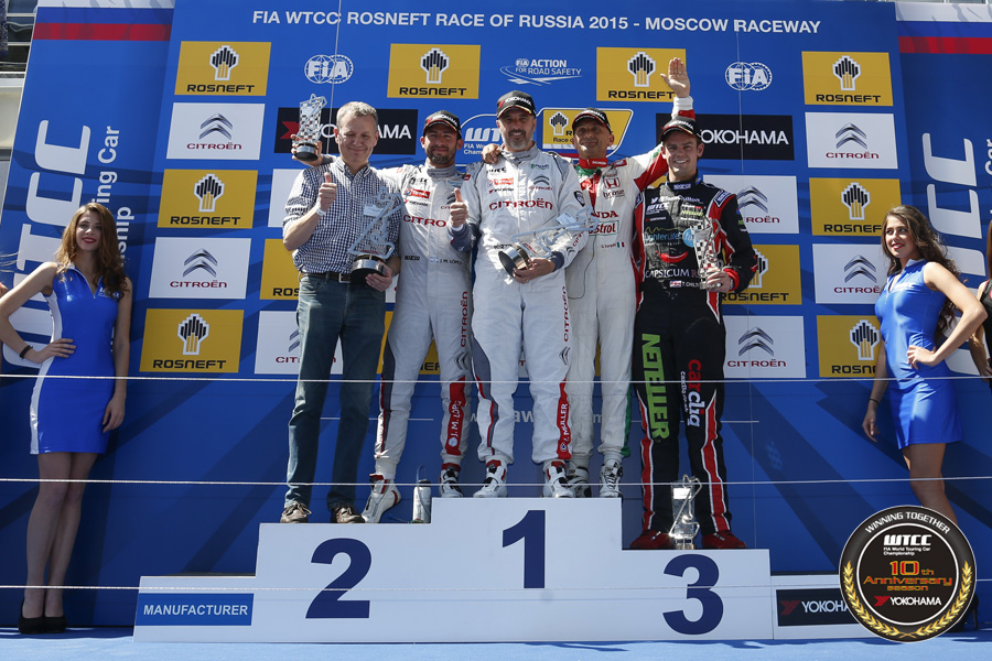 トップを走るモンテイロ選手は快調にラップを刻み、そのままチェッカードフラッグまでマシンを運んでポール・トゥ・ウィン。ハンガリーの第2レース(第6戦)以来となる、シビックの今季2勝目を飾った。2位は3.155秒差でハフ選手、レース中のファステストラップもマークする速さも見せて、ロシアのラーダファンに表彰台で笑顔を見せた。そして3位はシビックのミケリス選手となり、YOKOHAMAトロフィーのトップも奪った。