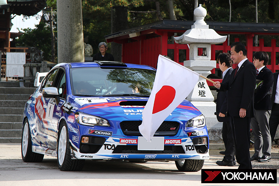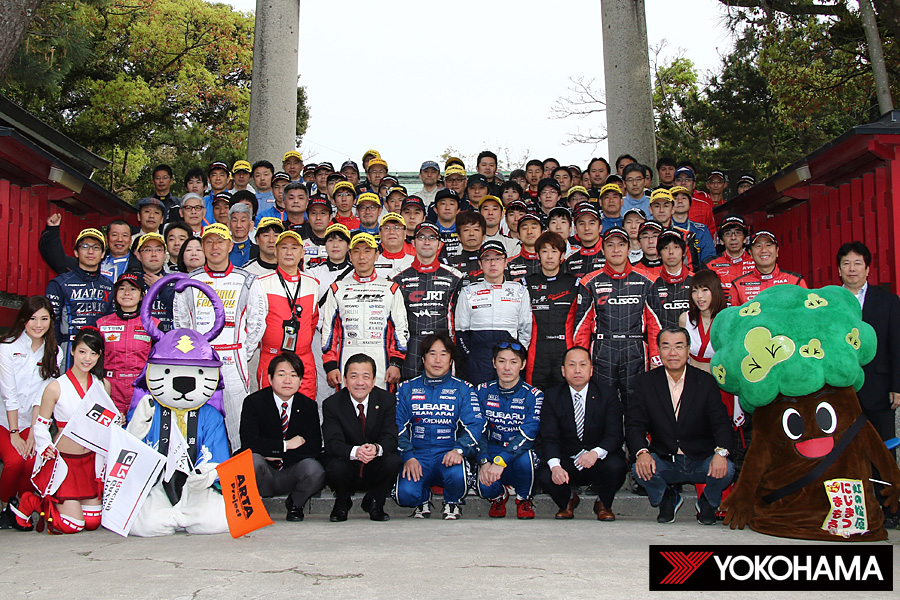 大会は4月9日(土)の午前8時から、唐津神社で恒例の安全祈願を全選手が参加して行った。昨年のチャンピオン、新井敏弘選手/田中直敏選手が選手代表として神前に玉串を捧げ、その後は唐津市の坂井俊之市長らと記念撮影、そして沿道で多くの市民が声援を送る中でセレモニアルスタートという流れで進んでいく。