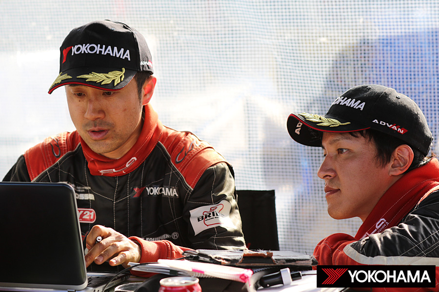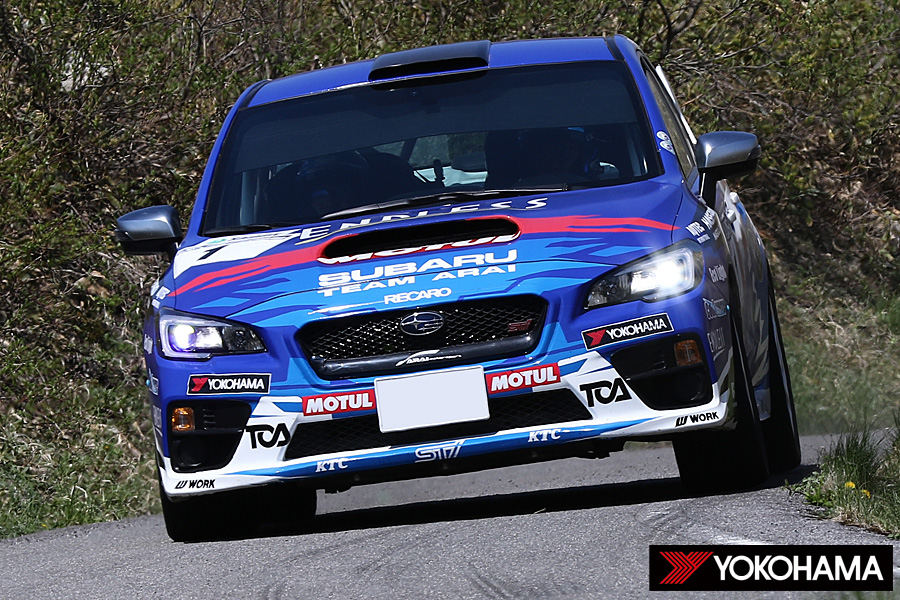 注目のオープニングステージ、「大谷Ⅰ(4.95km)」、そして標高1,500mまで駆け上がるSS2「大川嶺リバースⅠ(13.89km)」は、ともに奴田原選手組がステージベスト、新井選手組がセカンドベストで続いてヨコハマタイヤ勢がワン・ツーを奪って速さを見せる。しかしSS3「美川Ⅰ」でライバルがチャージ、両選手組はポジションをドロップしてしまう。一時は10秒近いビハインドを背負ってしまうが、Day1の後半に入ってSS5「大川嶺リバースⅡ」から新井選手組が3連続ステージベストを奪い、ポジションを2番手にあげてトップに2.3秒まで詰め寄って初日を折り返した。