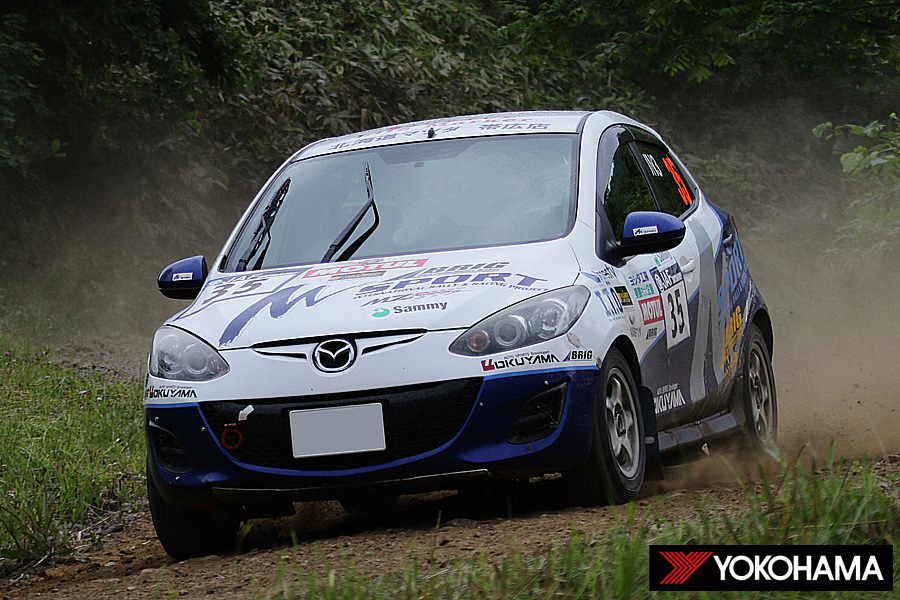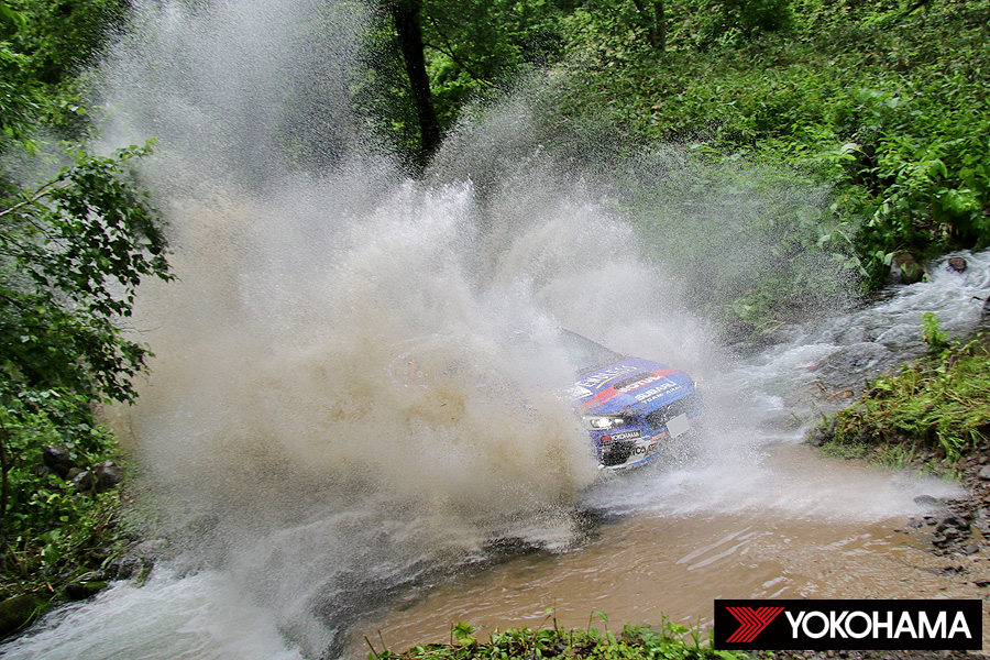 土曜日の午後から豪雨となった洞爺湖地方、その影響は日曜日にも残って路面はウェットコンディションに終始した。路面状況の見極めとタイヤ選択も重要なポイントとなったが、軟質路面用のADVAN A031を効率的に使ったのがJN6を制した奴田原選手組。金曜日のショートステージと土曜日の前半セクションをADVAN A053、雨が降った土曜日の後半はADVAN A031を選択。日曜日はADVAN A031でスタート、後半はADVAN A053に交換しつつ「SEA TANGLE」のみADVAN A031を2本装着するという戦略で臨んだ。