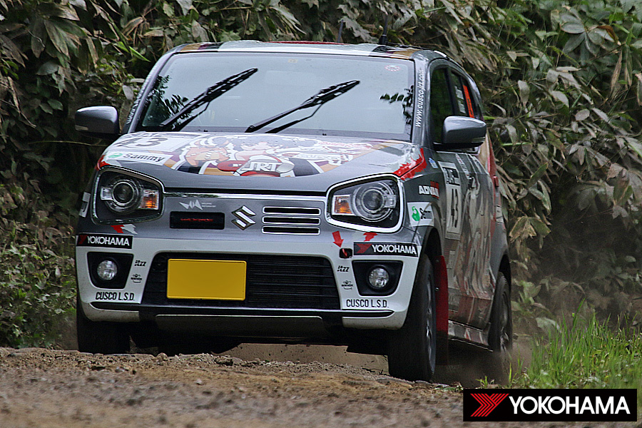 JN5クラスでは、柳澤宏至選手/中原祥雅選手組(208 R2)が今回も序盤から優勢に戦いを運んだ。金曜日のオープニングステージを制してクラストップに立つと、15本のうち9本のSSでベストをマーク。一度もトップを譲ることなくライバルを全く寄せつけない独走でマシンを運び、三連勝でランキングトップの座をさらに磐石なものとした。