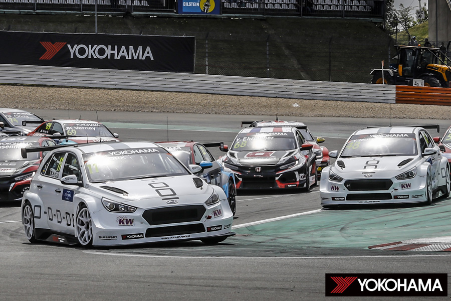 そんな二人がフロントローからスタートを迎えたレース1、長いフォーメーションの1周を経て各車がグリッドオン。先頭列に陣取った白いヒュンダイは、サイド・バイ・サイドで1~2コーナーを駆け抜ける。そして前に立ったのはミューラー選手、直後にビョーク選手、さらにロブ・ハフ選手(フォルクスワーゲン)、ノルベルト・ミケリス選手(ヒュンダイ)の4人がトップグループを形成する。