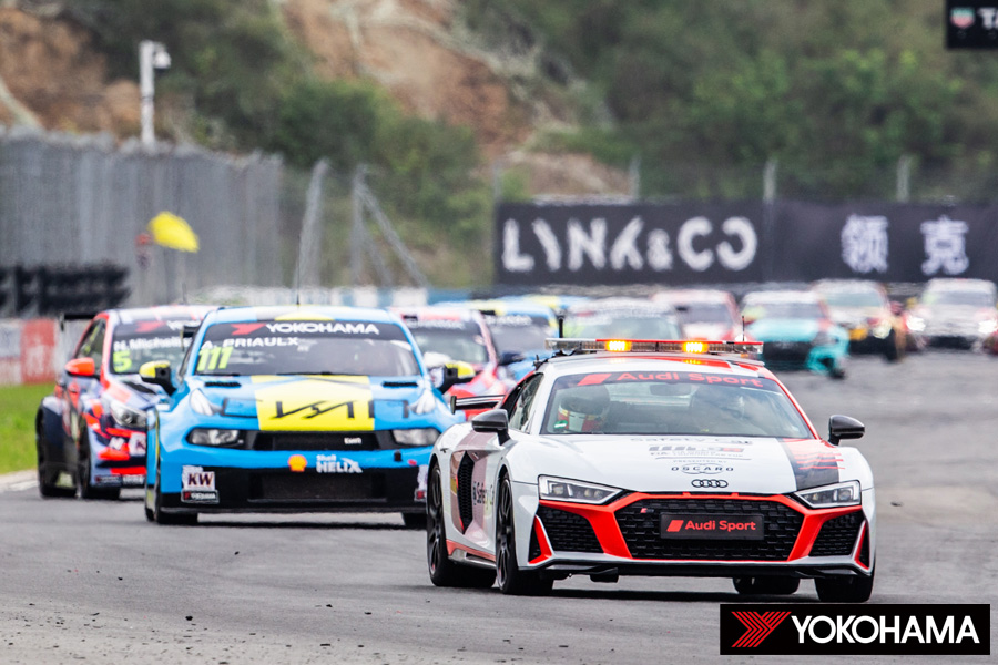 多くのマシンが破損したレース2終了から、長い間をおかずにスタートを迎えるレース3。ポールポジションはミューラー選手、2番手にはヤン・エアラッシ選手(Lynk & Co)と、叔父と甥の関係にある二人がフロントローに並んだ。