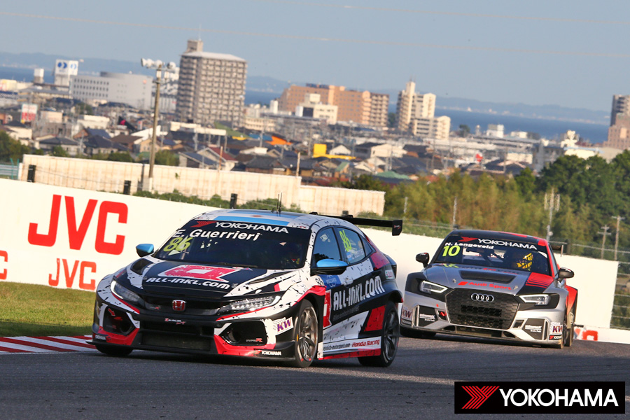 SUPER FORMULAとTCR ジャパンシリーズが併催される今回、FIA WTCRの26日(土)はレース1が15時05分から行われた。このグリッドは金曜日の予選結果に基づくが、多くの選手にセッション中の危険行為(低速走行)によるペナルティが科された。その結果、グエリエリ選手がポールポジションからスタートを迎えることに。