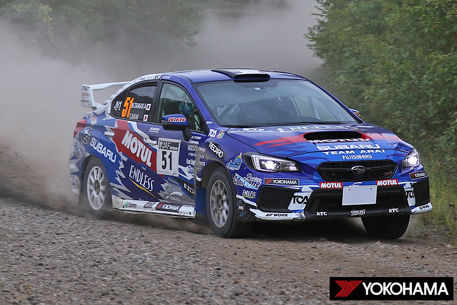 2回目のサービスを終えてLEG1は残り2本、このサービスで足回りを変更した新井(大)選手組が一気にペースアップしてSS7「NUPRIPAKE 3」で本大会待望のステージベストを奪取。そのままこの日最終のSS8「Yayoi 3」も連続ベスト、ここでは新井(敏)選手組がセカンドベストを刻んだ一方で、ライバルはマシントラブルもあって後退。初日を終えてトップは新井(大)選手組、2.1秒差の2番手に新井(敏)選手組という、ヨコハマタイヤで戦う“親子ワン・ツー・フォーメーション”が構築された。