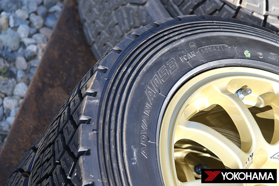 舗装路面で戦うターマック・ラリーでは、「ADVAN A08B」と「ADVAN A052」がユーザーの走りを支えている。舗装されていない路面で戦うグラベル・ラリーでは、幅広い路面状態への対応が強さを見せる「ADVAN A053」が主戦力。これに大雨などでは、軟質路面用の「ADVAN A031」を適宜使用する。