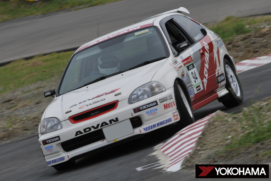 ヨコハマタイヤ勢を、という以上に全日本ジムカーナ選手権を代表するFF(前輪駆動)遣いとしてその名を知られるのが、SA1クラスにホンダ・シビックで参戦する斉藤邦夫選手だ。2014年、自身8回目となる全日本選手権のチャンピオンを獲得、2011年から4連覇を達成する強さを見せたベテランである。