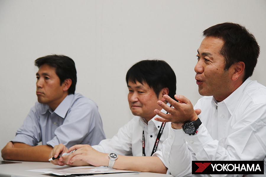 さらにヨコハマタイヤのスタッフも、参加された全ての選手のみなさんと親睦を深めていきます。全日本選手権などでは現場に立ち会うスタッフですが、地方選手権にはなかなか足を運べないこともあり、貴重な情報交換の場にもなりました。選手からはヨコハマタイヤの特性や上手な使い方に関する質問なども寄せられ、エンジニアからは丁寧な説明がなされていました。