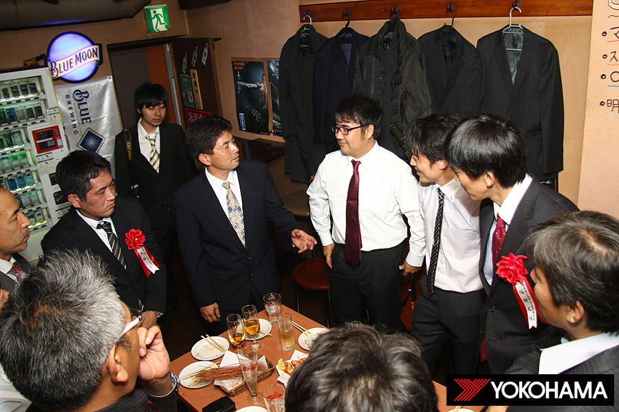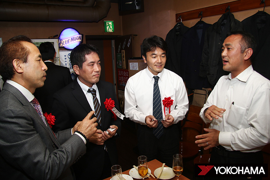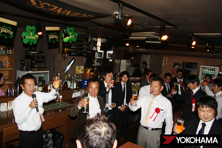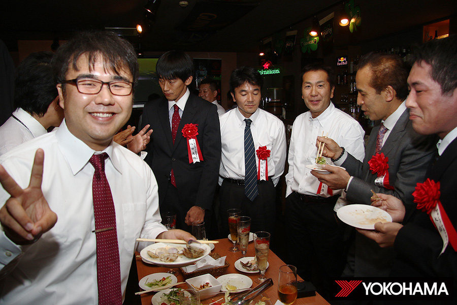 表彰式が終了した後、横浜ゴム本社から近いダイニングバーに会場を移して、懇親会が催されました。表彰式に出席した全ての選手のみなさん、そしてヨコハマタイヤのスタッフが、ここからはさらに和やかな雰囲気の中で親睦を深めていきます。