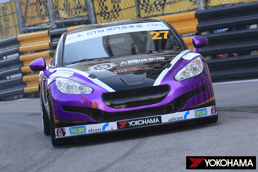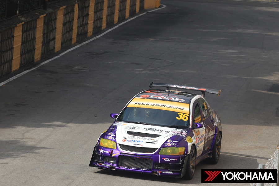 F3のプラクティス1回目に続いて、午前10時30分からプラクティスが行われたのは、日産GT-Rや三菱ランサー、トヨタ86、スバルWRXなどの日本車、さらにはロータスやシトロエン、フォルクスワーゲンなどヨーロッパのスポーツカーが集う「Macau Road Sport Challenge」。こちらもタイヤコンペティションのあるカテゴリーながら、36台のエントリー中、半数を超える17台がヨコハマタイヤを装着しての走行となった。