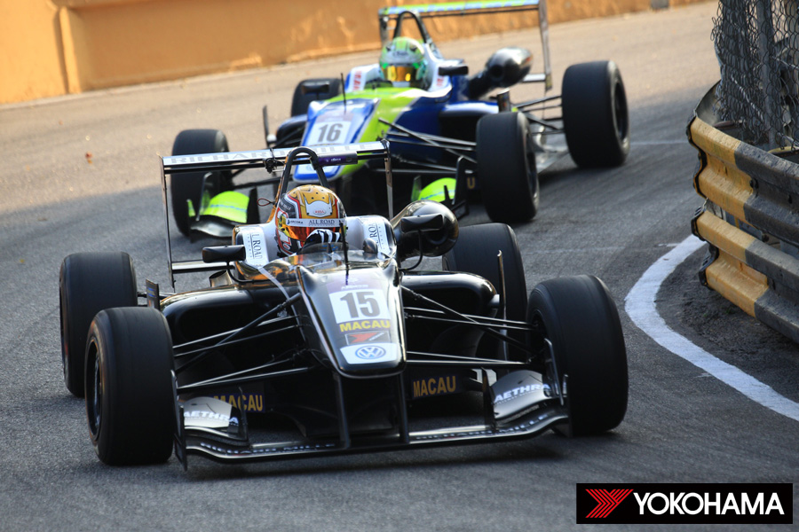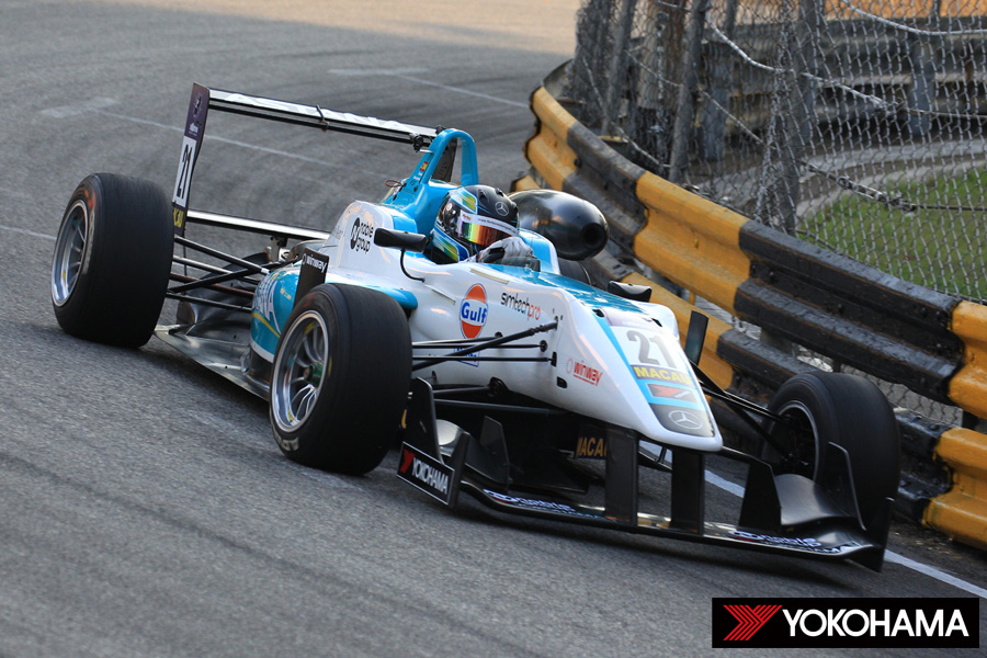 各国のF3シリーズから集ったトップランカーたちが覇を競う「Formula3 Macau Grand Prix」。全車がヨコハマタイヤの供給するコントロールタイヤを装着して行われるこのF3世界一決定戦とも呼ばれる一戦は、前日に引き続いて午前9時35分から40分間のプラクティス2回目、そして午後3時55分から同じく40分間の公式予選2回目が行われ、土曜の予選レースのグリッドが決定した。