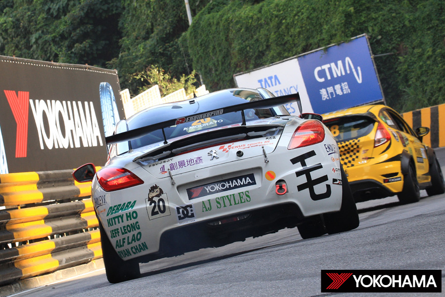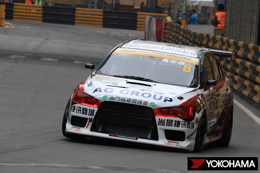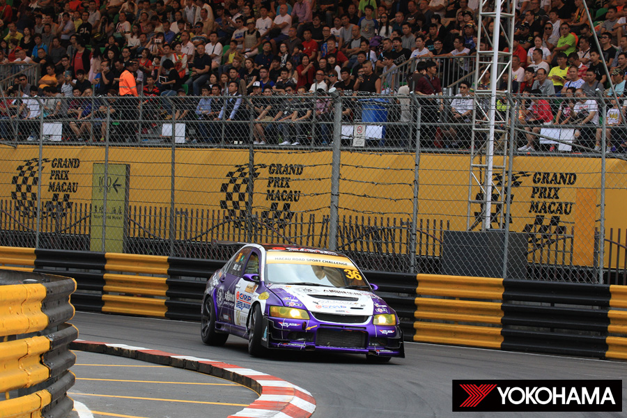 やや雲が増えた午前11時35分。予定どおり「Macau Road Sport Challenge」の公式予選が30分間で行われた。この公式予選に出走した36台のマシンの内17台と、昨日に続いて多くのマシンがヨコハマタイヤを装着してのコースインとなった。