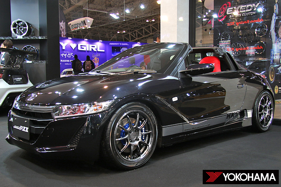 今回の東京オートサロンにおけるヨコハマホイールブースにおいて、ある意味で最も注目を集めた展示車両がこのホンダS660。なぜなら、ヨコハマホイールブースとして、初めてのKカー展示となったからだ。1990年代にホンダをはじめとした各自動車メーカーからKカーのスポーツモデルが続々とリリースされて一斉を風靡したが、今回の660はホンダにとってもBEAT以来およそ20年ぶりの軽自動車オープンモデルとして注目と人気を集めている。
