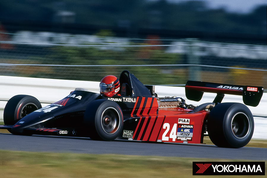 ヨコハマタイヤとトップフォーミュラの歴史は、1980年にスタートしている。全日本F2000選手権の後を継いで1978年に発足したのが全日本F2選手権、発足3年目の1980年にヨコハマタイヤが参戦を開始し、3つのタイヤメーカーによって競われることとなる。翌’81年には開幕戦で、高橋国光が初の5位入賞。さらに第4戦では高橋健二選手が2位でフィニッシュし、初の表彰台を獲得した。そして1982年、第2戦の富士で高橋健二選手が、ヨコハマタイヤにとっても悲願のF2初優勝を飾ったのである。