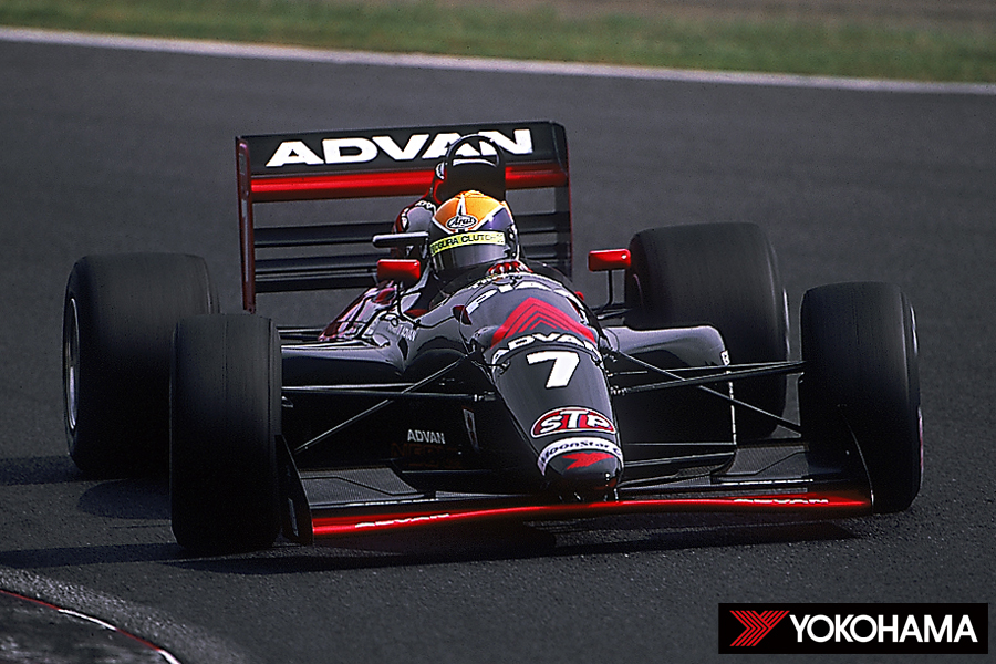 時代は移り変わり、1984年に欧州ではF3000規定のレースへと移行した。これを受けて日本でもノンタイトルの1シーズンをはさんで、1988年からF3000規定を導入した全日本F3000選手権が正式に発足。同年は全8戦が開催されたが、第6戦・富士では和田孝夫選手が優勝、高橋国光選手も3位表彰台を獲得し、ヨコハマタイヤ勢が1-3フィニッシュを飾った。その後もRed in BlackのADVANカラーをまとうマシンを中心にヨコハマタイヤ勢は存在感を見せ続け、テレビコマーシャルでもその勇姿は広く知られるところとなった。