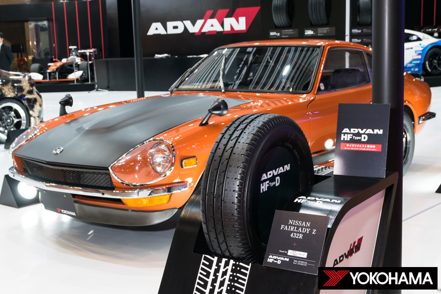 一方で市販タイヤを装着するデモカーは4台を展示。グローバル・フラッグシップブランド「ADVAN」の優れたパフォーマンスをアピールしたが、中でも話題を集めたのが、100周年を記念してこの秋に復活発売予定の「ADVAN HF Type D」プロトタイプ。1981年に発売、ポルシェへの新車装着なども通じて時代を牽引していた名作をヒストリックカー市場に向けて復活発売することは、多くの愛好家から関心を集めてSNS上などで話題となった。