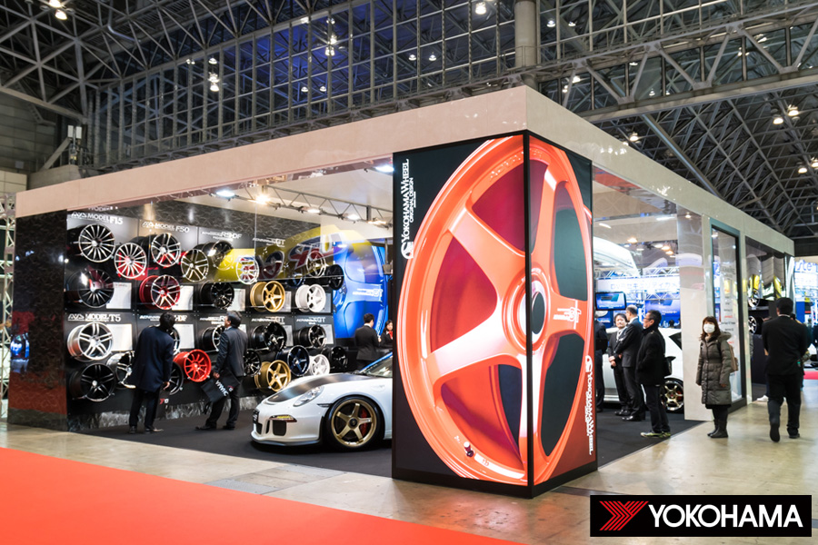 東京オートサロンにおいて、YOKOHAMA WHEELは例年同様のハイセンスなブースを展開した。壁一面を使った最新アルミホイールラインアップの展示はお馴染みの光景、カラーバリエーションも洗練されたヨコハマホイールの魅力を、会期中は国内外から訪れた大勢のみなさんにご確認いただいた。