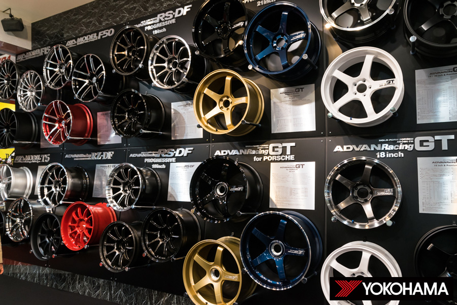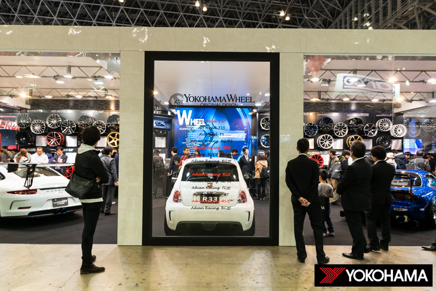 今年も大盛況となった東京オートサロンだが、混雑した人並みの中でもハイセンスにまとめられたブースが存在感を見せているYOKOHAMA WHEEL。主なラインナップを全カラー展示し、お馴染みの壁一面を使ったディスプレイで優れたデザイン性をアピールした。