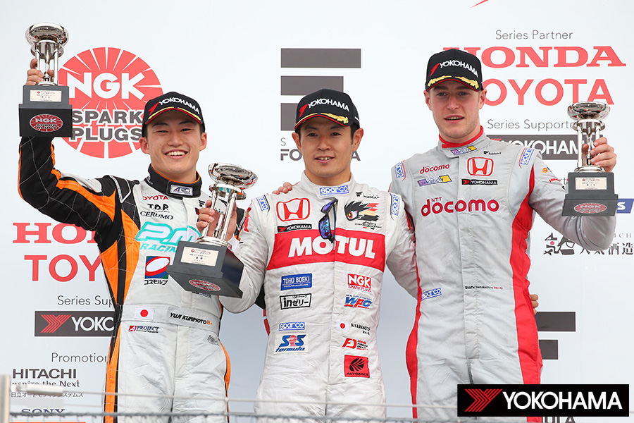 これによりタイヤ戦略も勝負を面白くする要因となり、予選では新品のソフトタイヤを最後まで温存した関口雄飛選手が初のポールポジションを獲得。決勝レースも制して、嬉しいSUPER FORMULA初優勝を手中におさめた。