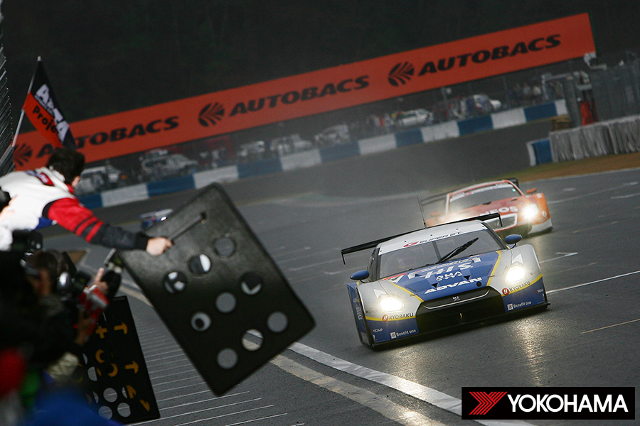 まだカレンダーは3月、曇り空で肌寒さも感じられるコンディション。路面温度は19℃と低めに推移していた中、3番手グリッドからスタートしたのは名門・土屋エンジニアリングが手がける「ECLIPSE ADVAN スープラ」。スタートを担当した織戸学選手はダッシュを決めて、オープニングラップの1コーナーでひとつポジションアップ。さらに9周目にトップ車両をロックオン、早期から発熱して高いグリップ力を発揮するタイヤパフォーマンスも活かして快走を見せた。後半を受け継いだドミニク・シュワガー選手も独走、記念すべきシリーズ発足初戦でヨコハマタイヤが優勝を飾った。